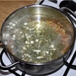 Przygotowanie wywaru: W garnku zagotuj wodę i wrzuć do niej suszone warzywa (lub użyj gotowego bulionu jarzynowego). Posól i gotuj około 20 minut, aby uzyskać smaczny wywar.
