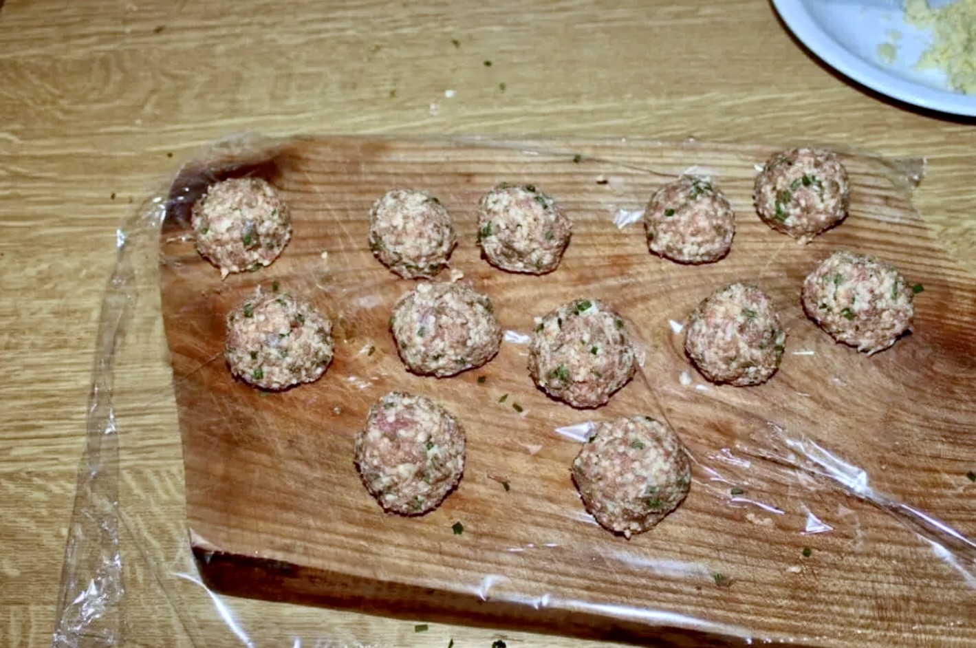 Formowanie: Z masy mięsnej formuj pulpety wielkości orzecha włoskiego. Układaj je na folii spożywczej, aby nie przykleiły się do blatu.