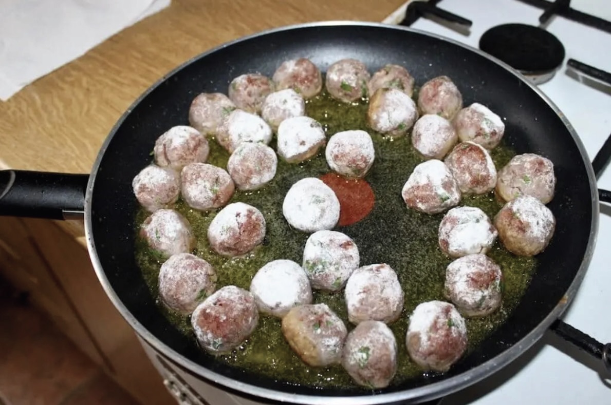 Obtocz je w mące i smaż na mocno rozgrzanej oliwie, aż się zrumienią. Małe pulpety po usmażeniu powinny być już gotowe w środku.