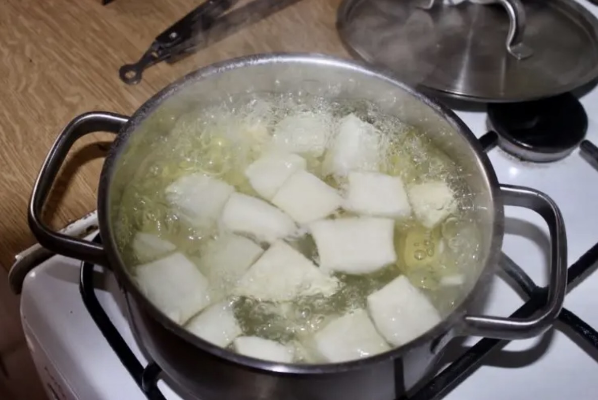 Gdy warzywa są miękkie, odcedź je. Pozostaw je w garnku, a garnek postaw na małym ogniu.