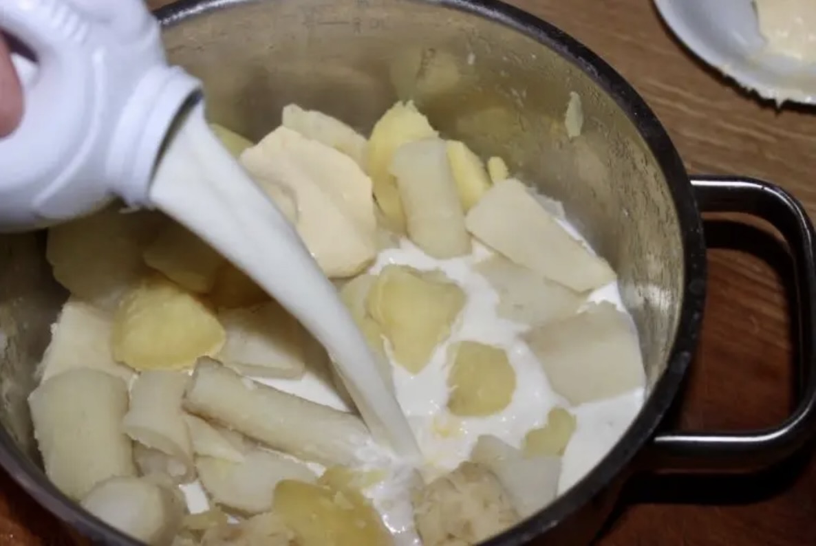 Zdejmij garnek z ognia i wlej do warzyw około szklanki mleka.