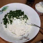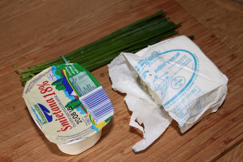 Dodanie składników: Dodaj śmietanę, posiekany szczypiorek, sól i pieprz.