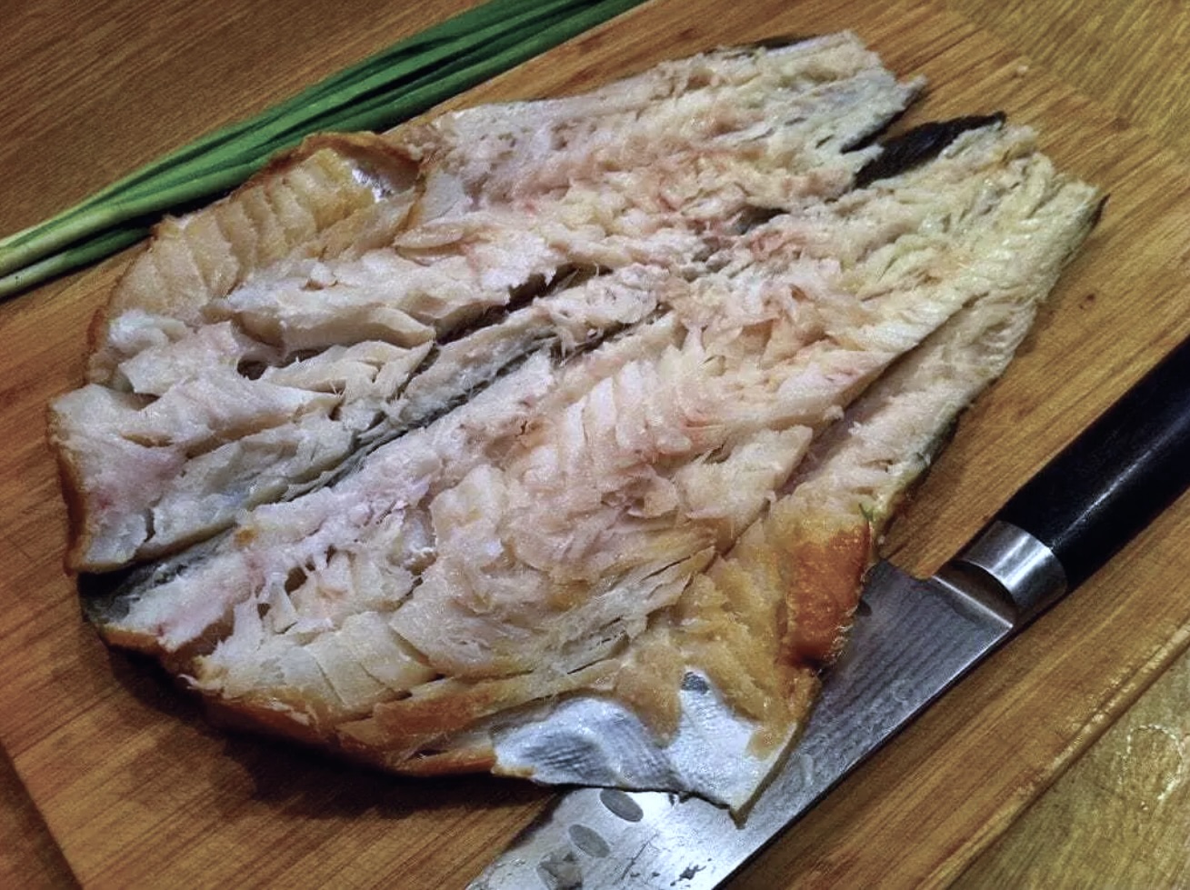 około 200 gramów wędzonego dorsza