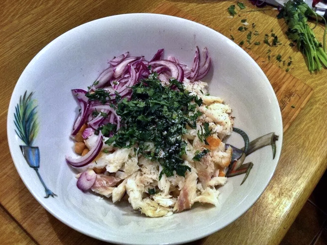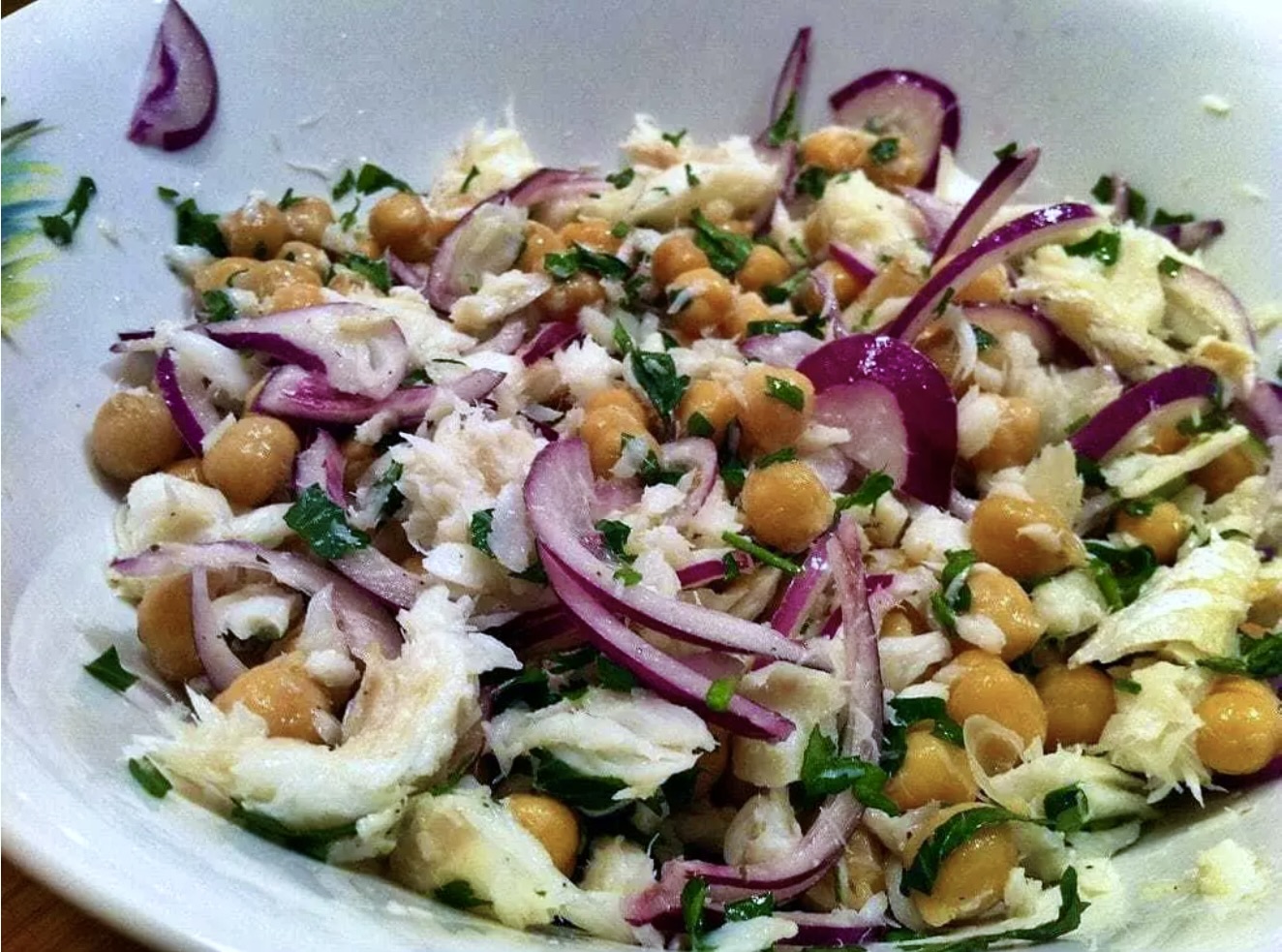 Sałatka z ciecierzycy i dorsza wędzonego