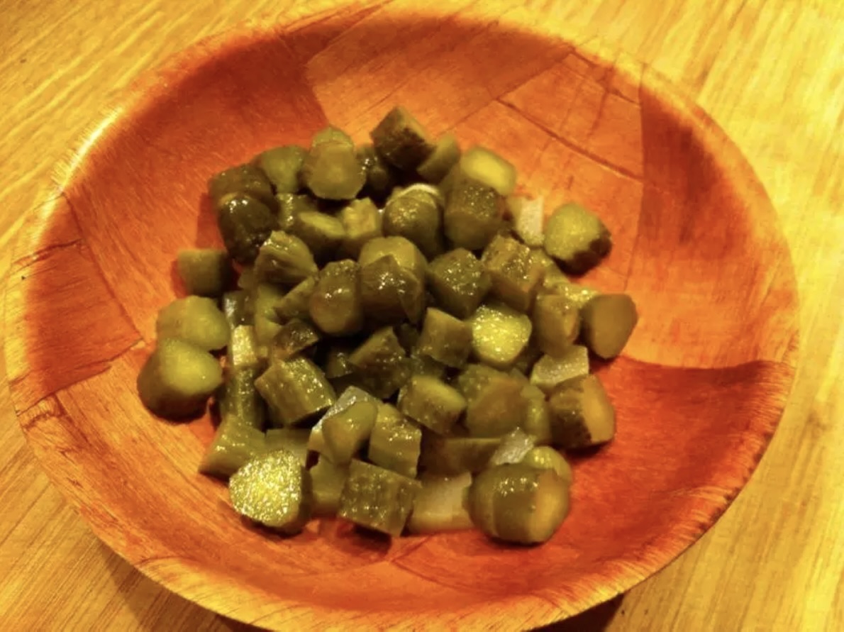 Warzywa: Rzodkiewki pokrój w drobne słupki (julienne), korniszony w małe kawałki, a kapary lekko posiekaj. Dymkę i natkę pietruszki drobno poszatkuj (posłużą do posypania całości).