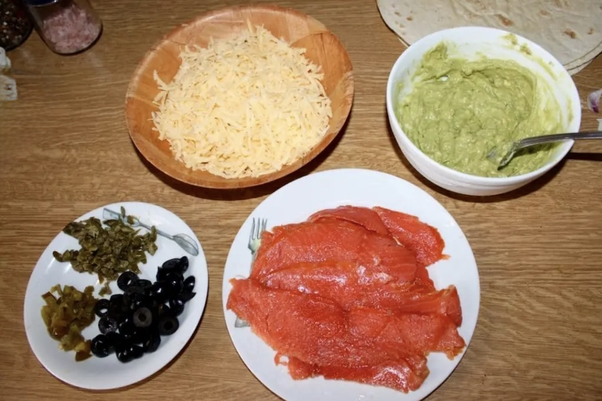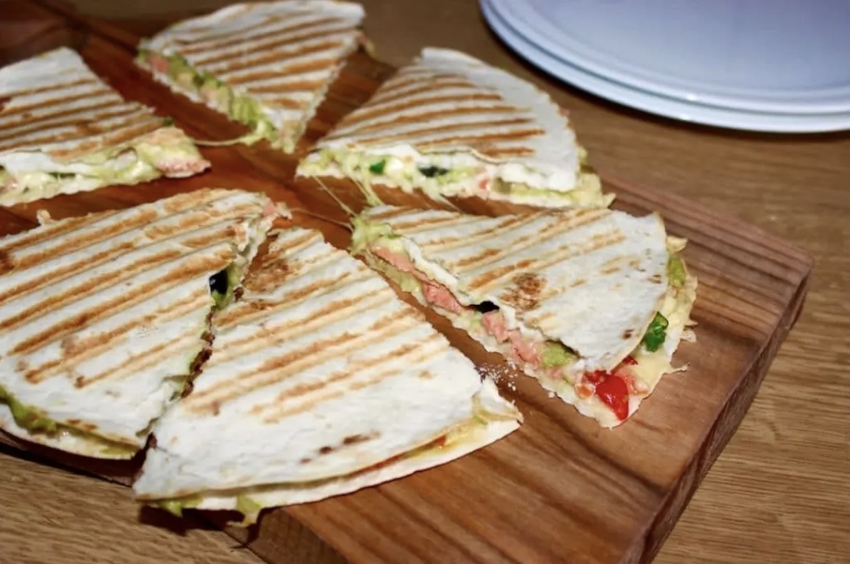 Quesadilla z łososiem to moja nowa propozycja w temacie wrapów. Quesadilla to meksykańskie danie, którego głównymi składnikami są placek kukurydziany (tortilla) i świetnie roztapiający się ser Oaxaca. W praktyce na co dzień stosuje się tortillę pszenną i dowolny dobrze roztapiający się ser. A jakie dodatki skrywa quesadilla? (czyt.: kesadija) To zależy tylko i wyłącznie od inwencji lub zawartości lodówki ją przygotowującego. Tym razem proponuję quesadilla z łososiem. Łosoś koniecznie wędzony, a konkretnie wędzony na zimno, a awokado bardzo miękkie. Takie, aby dało się je rozsmarować. Efekt naprawdę znakomity.