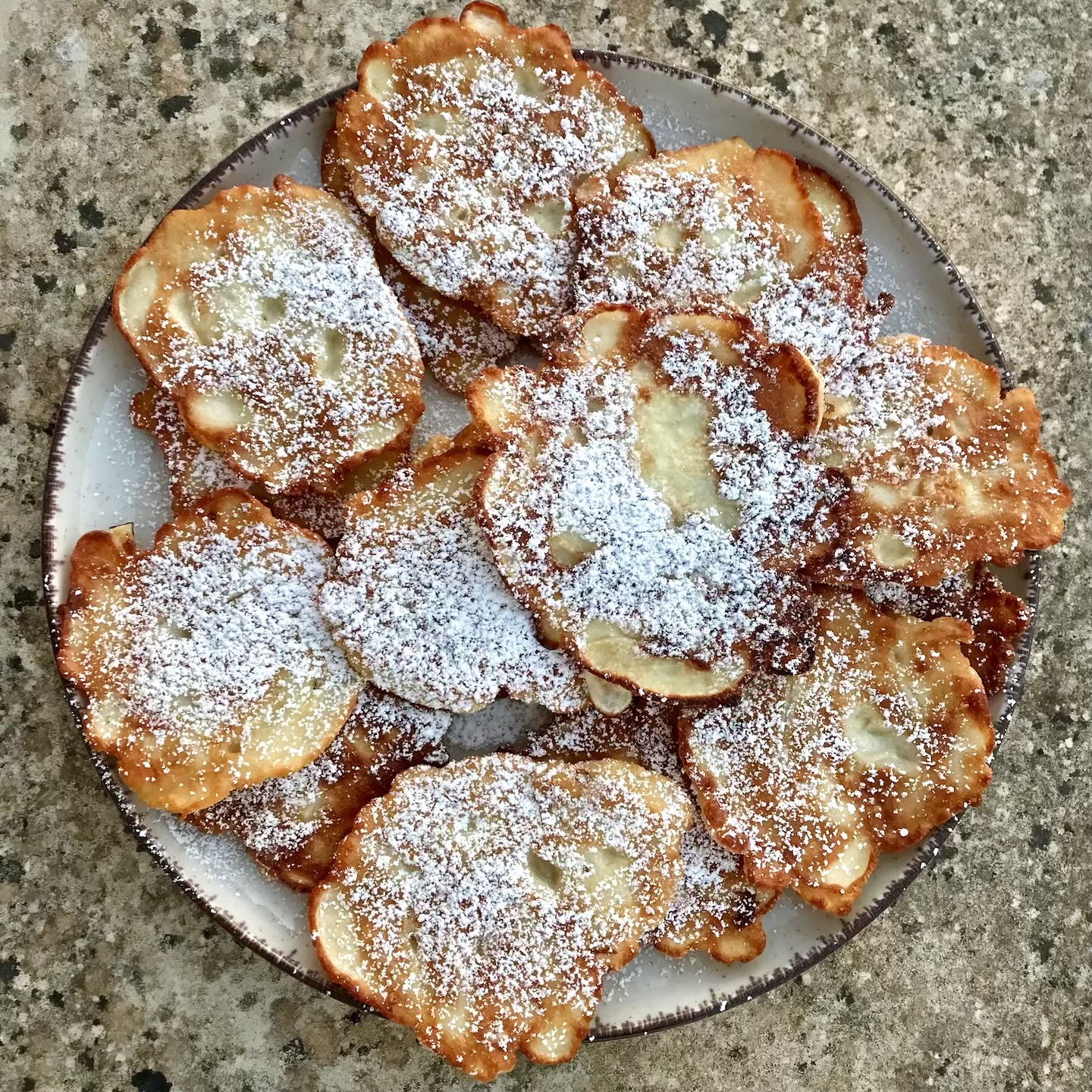 Podawanie: Racuchy z jabłkami serwuj na gorąco, obficie posypane cukrem pudrem.