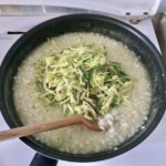 Dodanie cukinii: Po około 15 minutach, gdy ryż jest „al dente” (miękki, ale stawia opór), dodaj startą na dużych oczkach cukinię oraz ewentualnie listki mięty i płatki chilli. Gotuj całość przez 3 minuty.