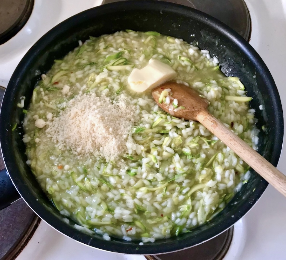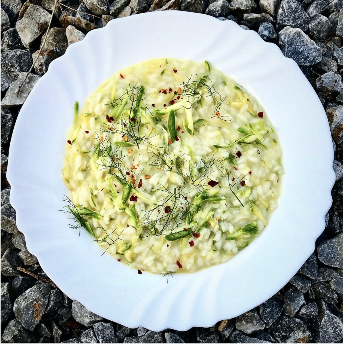 Risotto z cukinią to idealne danie na ciepłe lub nawet gorące dni. To danie sycące, ale i lekkie dzięki użyciu minimalnej ilości składników. Zarówno cukinia, jak i ryż nie mają zbyt intensywnego smaku. Zatem o ostatecznym smaku tego dania decyduje jego wykończenie. Ser powinien być charakterny, jeśli nie parmezan to pecorino, ewentualnie nasz oscypek pasował będzie swietnie. Nuta anyżu, suszone płatki chilli albo grubo zmielony pieprz nadadzą daniu dodatkowego charakteru. Mój przepis potraktuj jako bazę. Na jego podstawie stwórz swoje własne przepyszne risotto z cukinią.