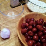 Przygotowanie czereśni: Pozostałe 500 g czereśni również umyj, a następnie wydryluj. Szalotkę pokrój w drobną kostkę.