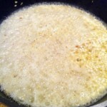 Podlewanie winem: Wlej duży kieliszek wina musującego (Prosecco), zwiększ gaz i poczekaj, aż alkohol odparuje. Zmniejsz gaz.