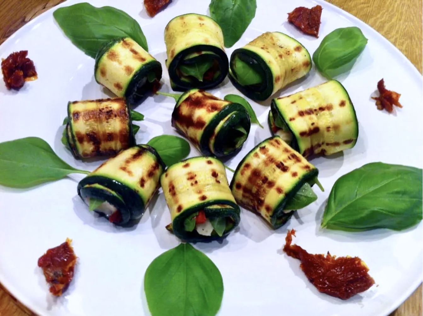 Roladki z cukinii to przystawka z grillowanych pasków cukinii wypełnionych serowym nadzieniem.