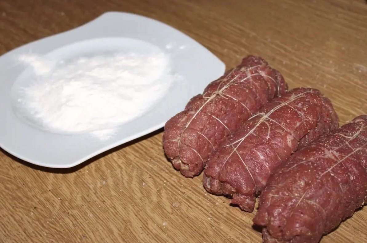 Podanie: Z rolad zdjąć sznurki, a następnie włożyć je z powrotem do rondelka z sosem. Podgrzać przez kilka minut.