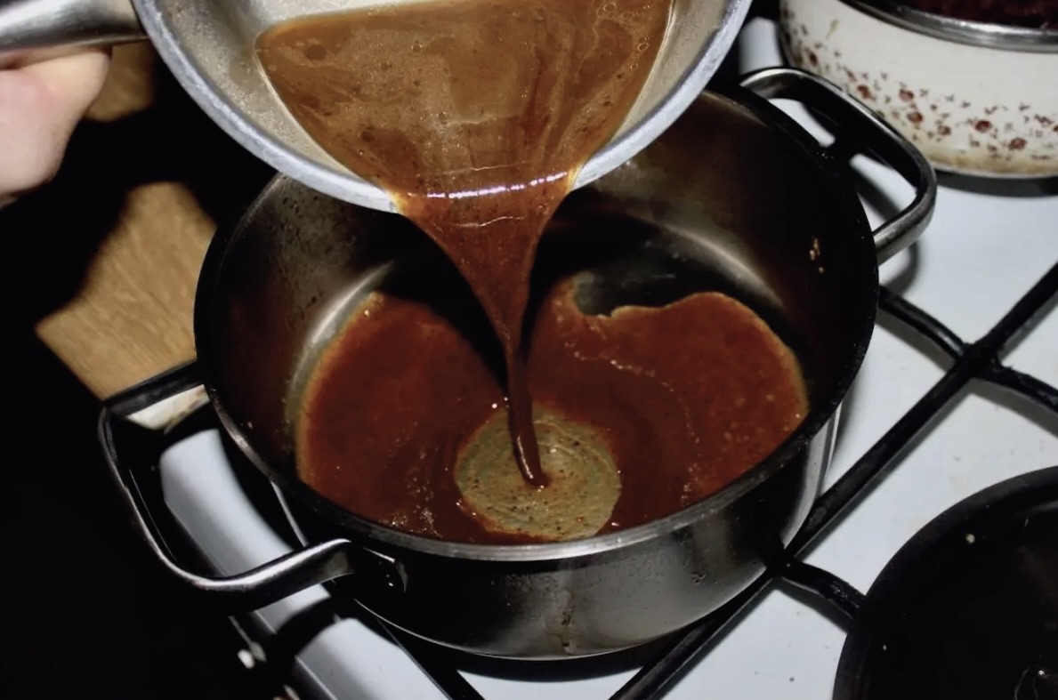 Odsmażanie (Deglasowanie): Wlać na patelnię szklankę gorącej wody, a następnie zeskrobać z dna cały „smaczek”. Przelej zawartość patelni do rondelka z roladami.