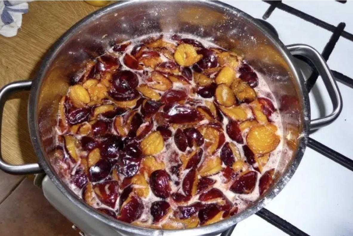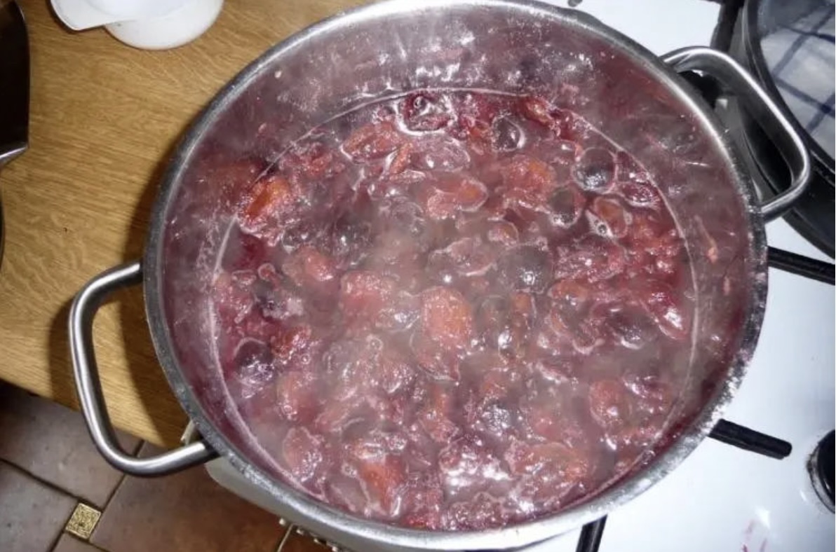 Koniec gotowania: Roster jest gotowy, gdy większość owoców się rozpadnie, ale część pozostanie w kawałkach, a kolor konfitury będzie fioletowy (bordowy).