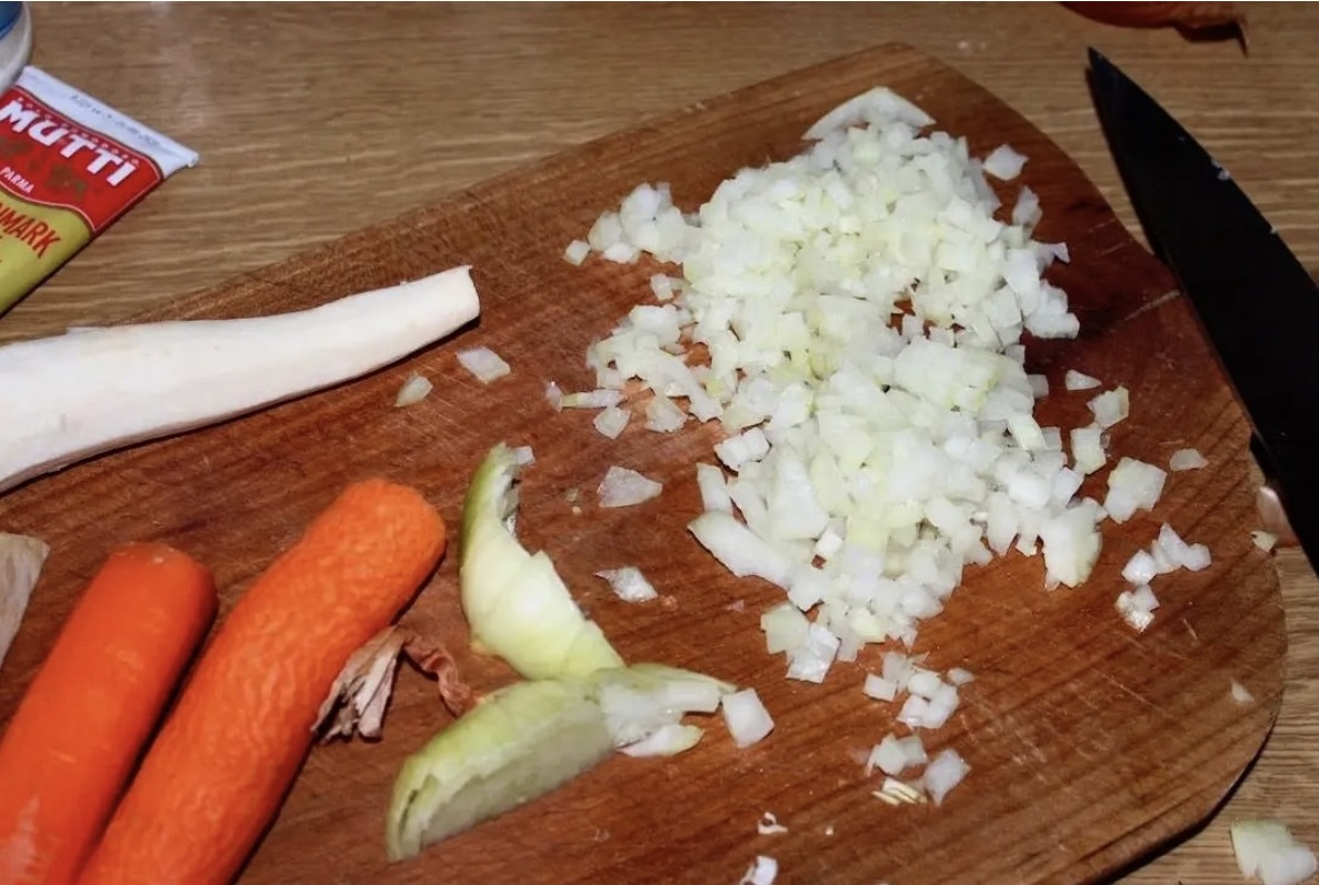 Cebulę pokrój w drobną kostkę.