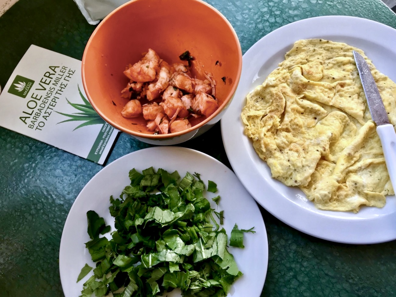 Gdy omlet przestygnie, zwiń go w rulon i pokrój w cienkie paski.