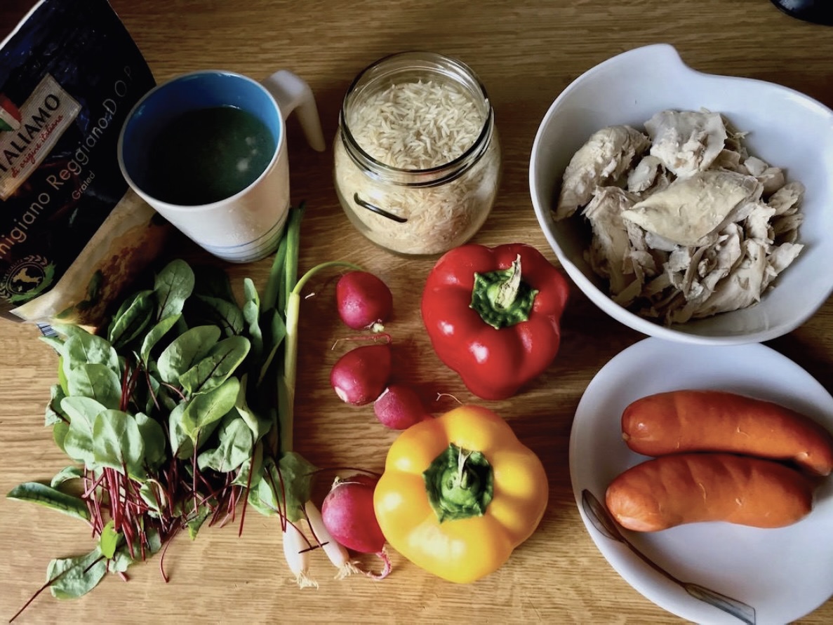 To idealne danie na wykorzystanie resztek z lodówki, np. kurczaka i rosołu z poprzedniego dnia.