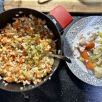 Gotowanie warzyw: Marchew, pietruszkę i seler obierz i ugotuj do miękkości w lekko osolonej wodzie lub bulionie (Sugeruję jednak bulion dla lepszego smaku). W osobnym garnku ugotuj ziemniaki w mundurkach. Po ugotowaniu odstaw warzywa do lekkiego przestygnięcia.
