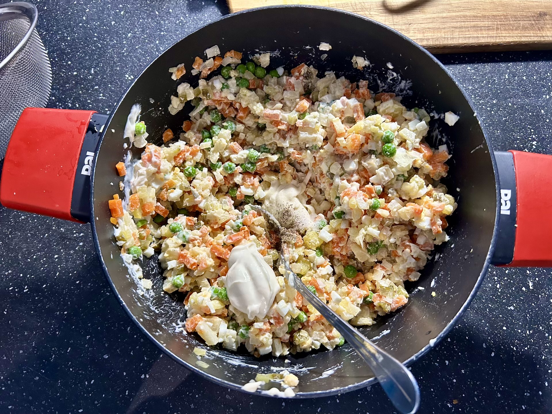 Doprawianie: Całość dopraw solą i pieprzem. Dodaj majonez, a następnie delikatnie wymieszaj.