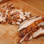Przygotowanie kurczaka: Dwie spore piersi z kurczaka delikatnie rozbij na dość grube kotlety. Obficie posyp ulubionymi przyprawami.