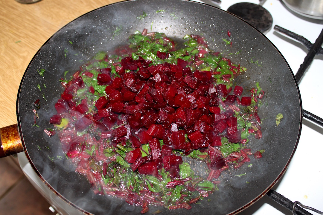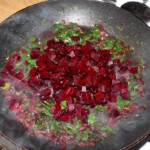 Wykończenie: Dodaj garść posiekanego koperku, sól i pieprz. Następnie dodaj posiekane, pieczone buraczki.