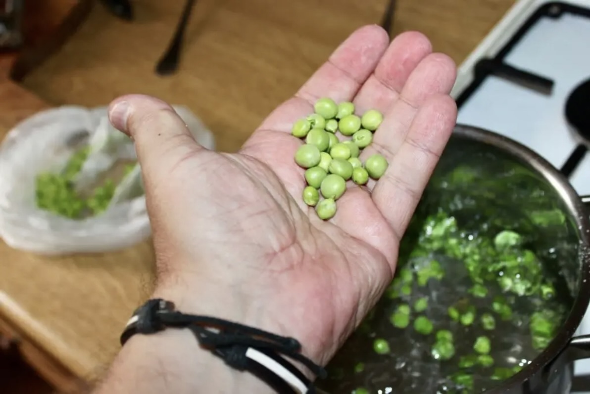 Około 100 gramów świeżego zielonego groszku
