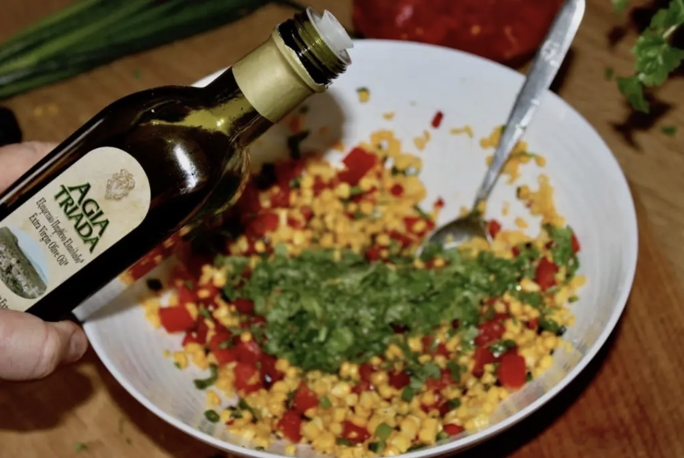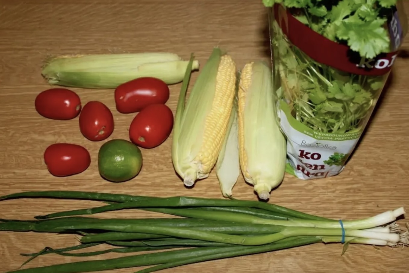 Sałatka z kukurydzą może być świetnym dodatkiem do niemal każdego posiłku. Przygotowana została z ziaren kukurydzy gotowanej, posiekanych pomidorów, ostrych papryczek, dymki i świeżej kolendry, a przed podaniem skropiona sokiem z limonki i oliwą. Ta sałatka z kukurydzą jest świetnym dodatkiem do dań z grilla, ale także do każdego nawet najzwyklejszego obiadu domowego. Pamiętać jednak należy, że jednym ze składników jest kolendra, które ma bardzo specyficzny aromat i zapewne nie będzie współgrała z niektórymi smakami. Od czegóż jednak Twoja wyobraźnia. Moja sałatka z kukurydzą może być przyrządzona ze świeżej kukurydzy, kiedy ta jest dostępna w sezonie, ale smakuje równie dobrze z kukurydzą z puszki. Czasem, ku zaskoczeniu, tak po prostu bywa.
