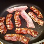 Boczek: Usmaż cieniutko pokrojone plasterki surowego, wędzonego boczku na chrupiąco.