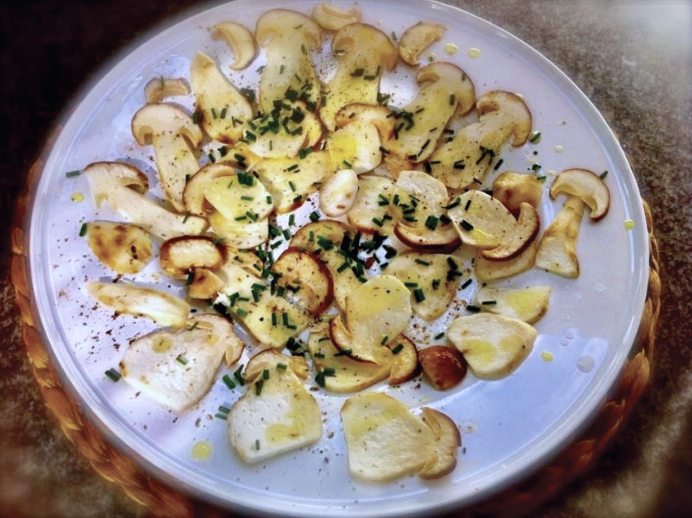 Sałatka z prawdziwków to propozycja przystawki w stylu włoskim. Na surowo, bo grzyby (jak carpaccio) należy kroić na świeżo, najlepiej takie prosto z lasu. To danie nie jest dla każdego, ale jestem przekonany, że każdy powinien surowego prawdziwka spróbować. Tylko w taki oto sposób można docenić jego naturalny, oryginalny smak. Sałatkę robi się bardzo szybko i należy ją spożywać od razu po jej przygotowaniu. Nie pozwól, aby grzyby czekały, bo stracą swoją sprężystość i chrupkość. Oczywiście grzyby muszą być pierwszej klasy, to znaczy zdrowe i świeże. Inne nie wchodzą w ogóle w rachubę.