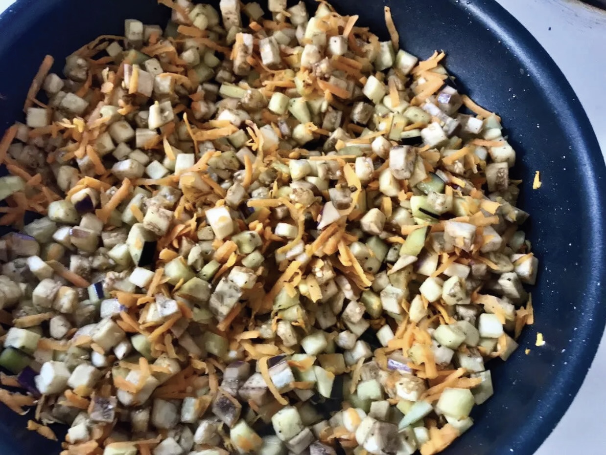 Smażenie bakłażana i marchewki:
