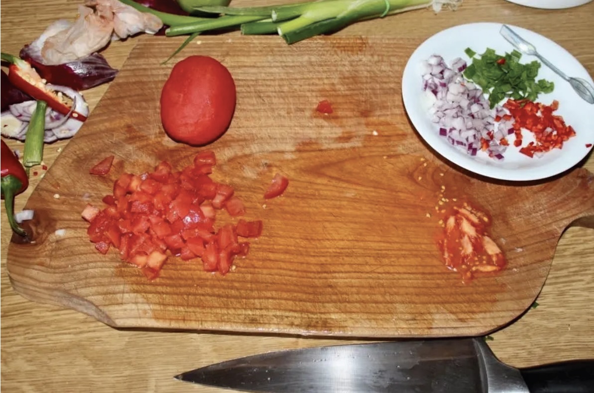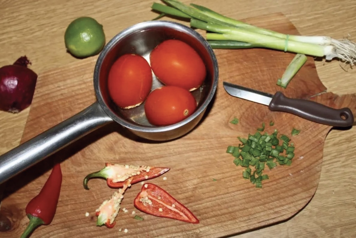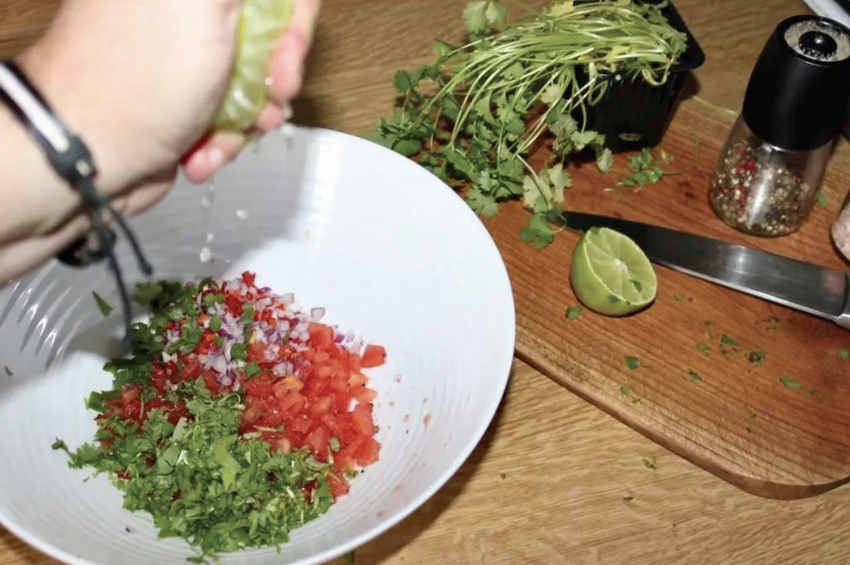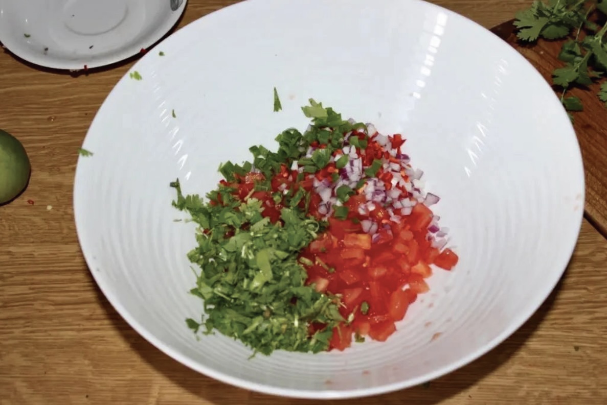 Łączenie: Do miski z pomidorami dodaj cebulę, papryczkę, dymkę oraz kolendrę. Pamiętaj, że dodatki te mają jedynie doprawić salsę – to pomidory powinny dominować w smaku.