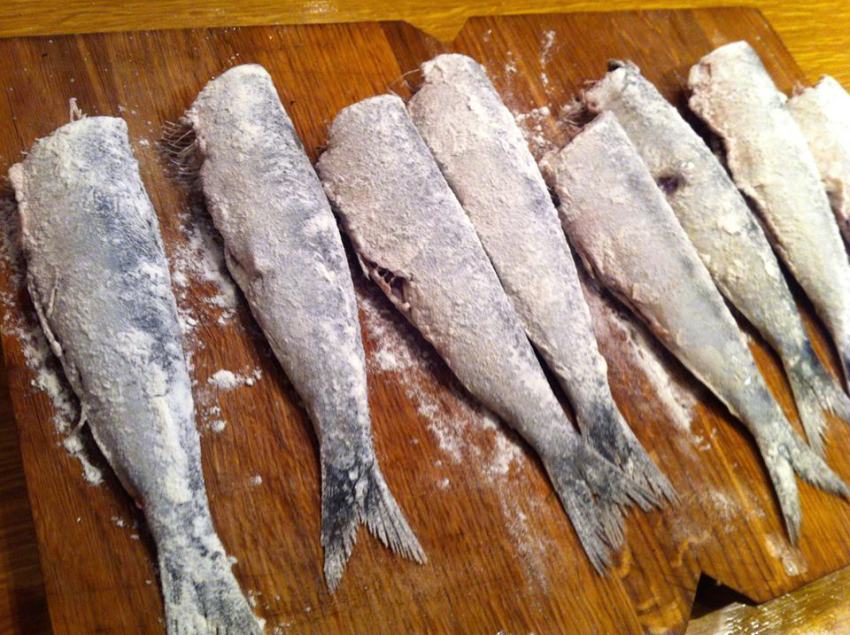 Smażenie: Sardynki posól i delikatnie obtocz w mące, strzepując jej nadmiar.