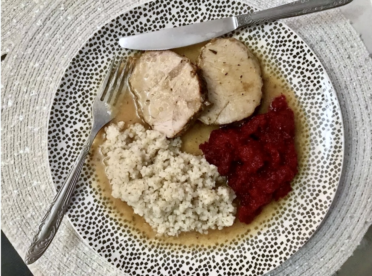 Podanie: Wyjęte mięso owiń folią aluminiową i odstaw na kilka minut. W międzyczasie przygotuj sos z zawartości rękawa (zagrzej, odparuj, dopraw i przecedź). Pokrój mięso na plastry i podawaj polane sosem.