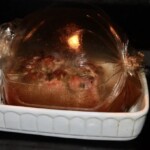 Pieczenie na rumiano: Po upieczeniu delikatnie przetnij rękaw, usuń z wierzchu czosnek, zioła i sznurek. Polej mięso sosem, posmaruj z wierzchu musztardą i wstaw odkryte do piekarnika na 15-30 minut, polewając sosem co 5 minut, aż się przyrumieni.