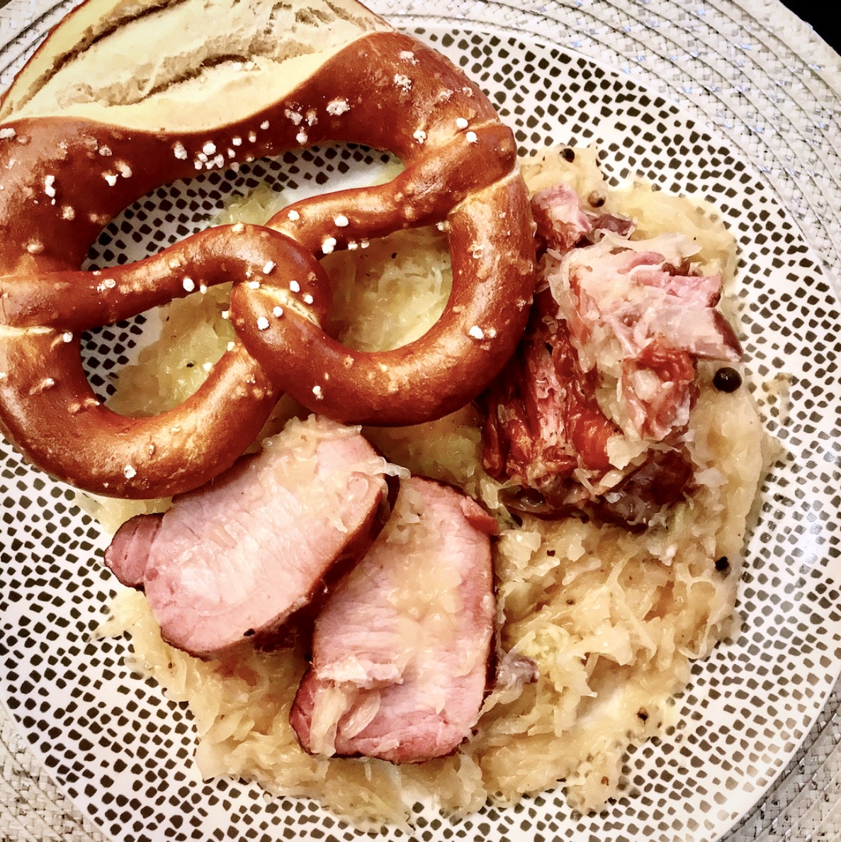 Schab wędzony duszony podany na kapuście kiszonej, z puree ziemniaczanym to klasyczne danie kuchni niemieckiej. Znane jest ono pod nazwą Kasseler Rippchen. Bazą dania jest schab wieprzowy wędzony. Nie jest on łatwy do kupienia u nas, jednak warto próbować go zdobyć. Taki schab uduszony z kapustą kiszoną smakuje zupełnie inaczej, aniżeli tradycyjny duszony lub pieczony schab. Innymi słowy wyróżnia go charakterystyczny posmak wędzonki, a mięso po uduszeniu lub upieczeniu jest soczyste. W dodatku duszona razem z wędzonką kapusta kiszona nabiera fenomenalnego posmaku. Zachęcam.
