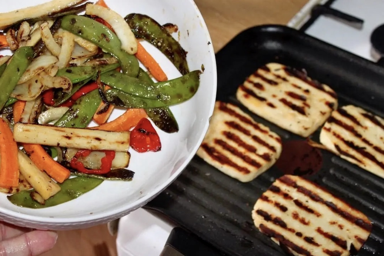 Ser halloumi z warzywami smażonymi