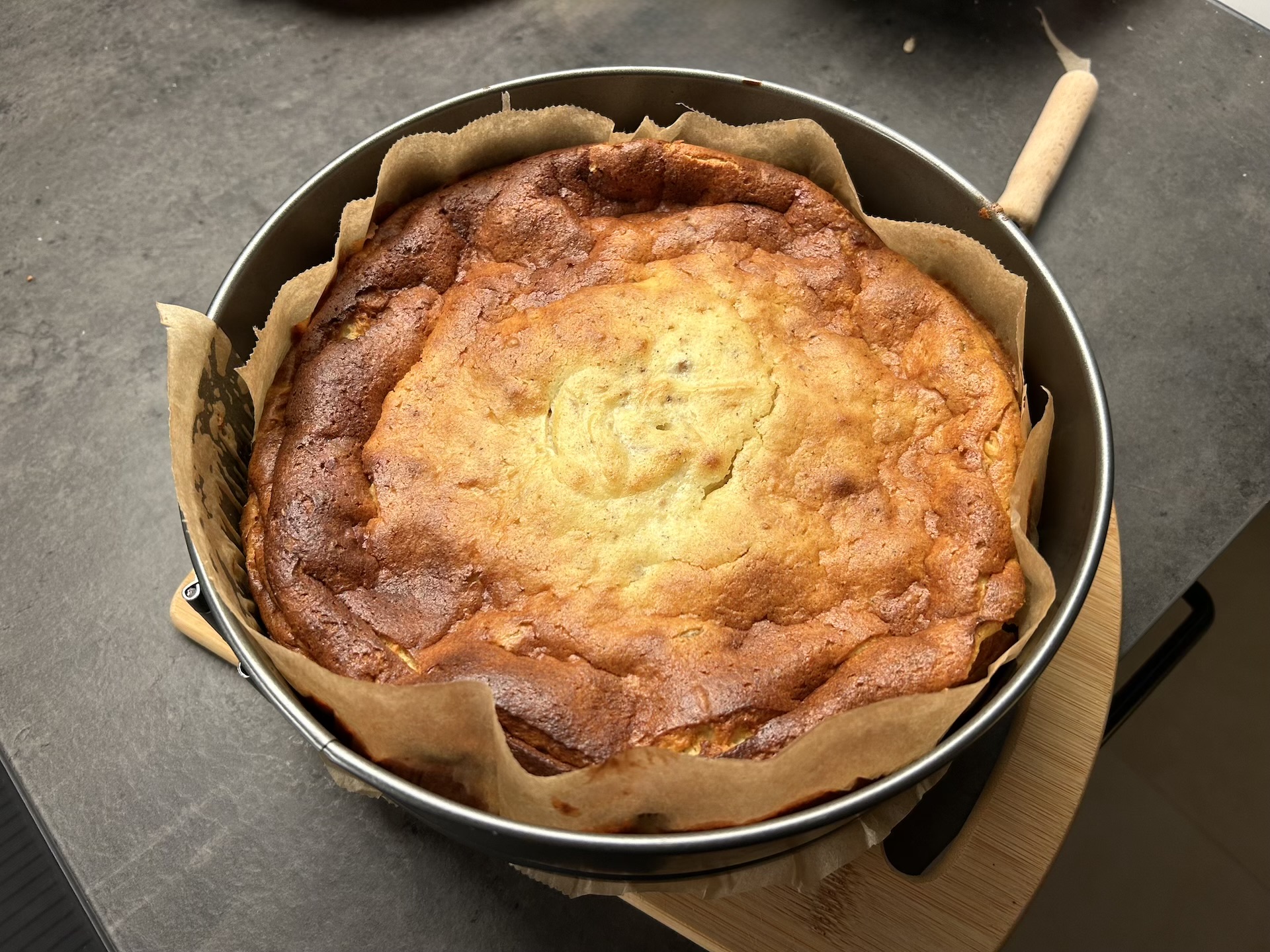 Pieczenie: Gotową masę przelej do okrągłej formy wyłożonej papierem do pieczenia. Wstaw do piekarnika nagrzanego do 180°C i piecz przez około 50 minut.