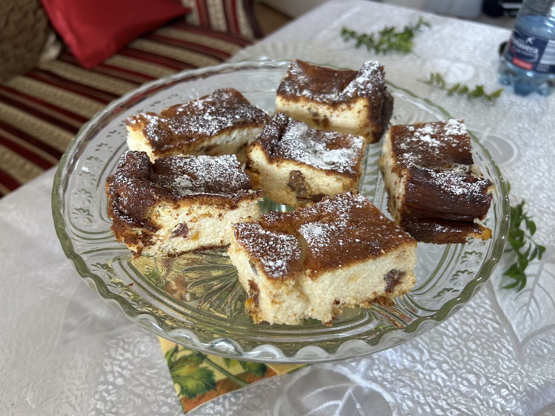 Sernik mojej teściowej to puszyste ciasto upieczone na bazie sera twarogowego połączonego z masą jajeczną i cukrem z dodatkiem bakalii. Ja wiem, że wiele osób będzie protestować, że użyłem do pieczenia tego sernika gotowego twarogu z wiaderka. Jednak ja będę bronił takiego rozwiązania. A to dlatego, że zarówno smak, jak i skład i sposób przygotowania tego typu twarogów znacznie się poprawił w ostatnich latach. Świat musi iść do przodu, nie ma powodów żeby ciągle utrudniać sobie życie. Czytaj etykiety, a jak coś jest dobre to korzystaj. Czemu nie. Ten sernik jest znakomitym dowodem, że użycie tzw. gotowca czasem jest rozwiązaniem dobrym.