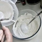 W misce malaksera lub blendera ubij białka z 3 jajek na sztywną pianę, dodając stopniowo cukier puder.