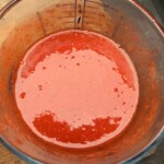 Gdy galaretka jest już zimna, ale jeszcze nie tężeje, dodaj do niej zmiksowane truskawki.