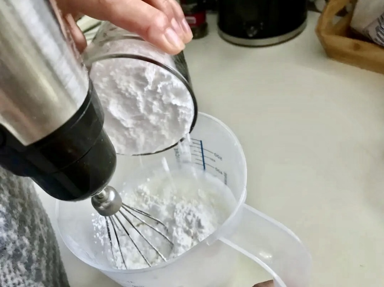 Dodaj skrobię kukurydzianą (lub ziemniaczaną) oraz ekstrakt wanilii. Następnie wymieszaj i odłóż na bok.