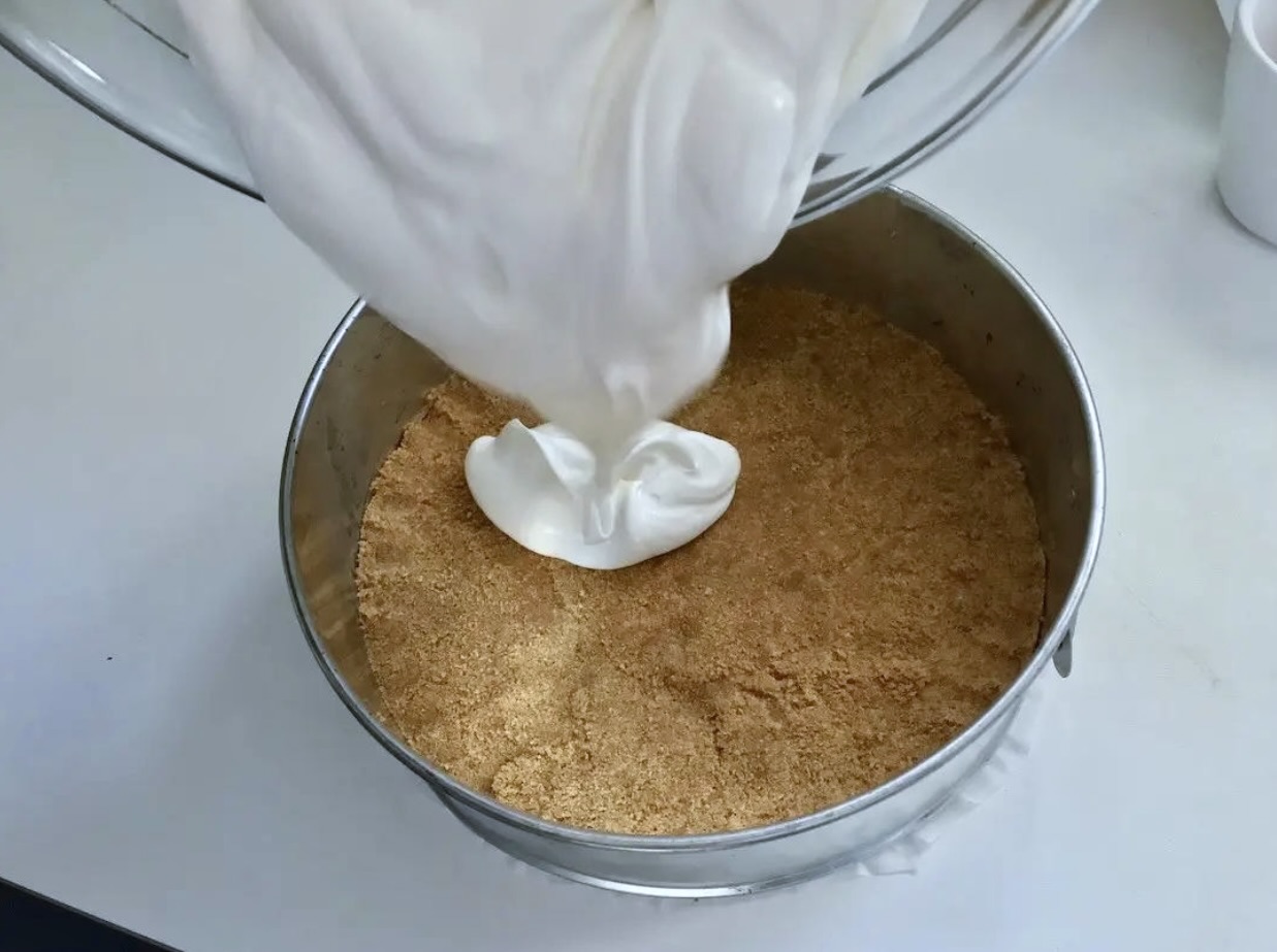 Uwaga: Tortownica musi mieć wysokie brzegi, ponieważ sernik bardzo mocno rośnie podczas pieczenia.