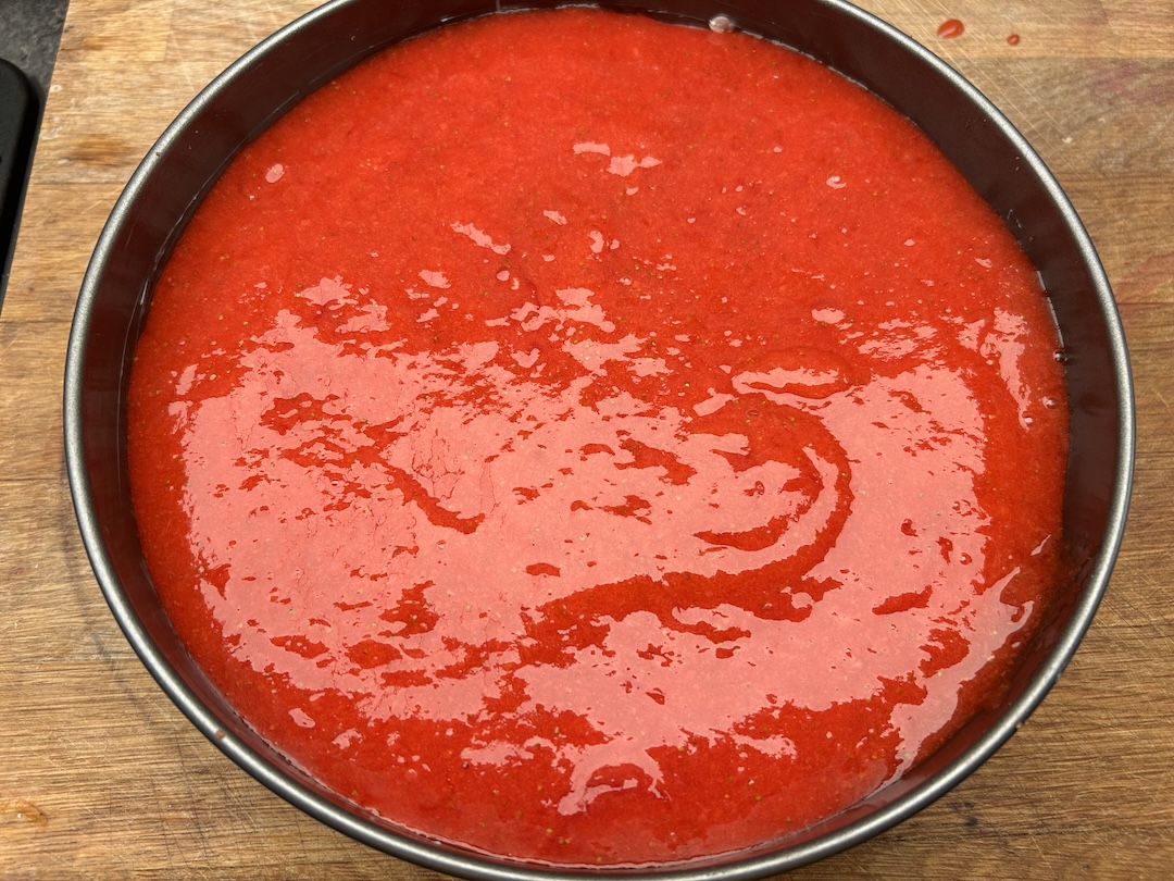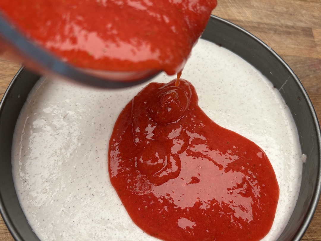 Gdy mus lekko stężeje, wylej go na przestudzony sernik.