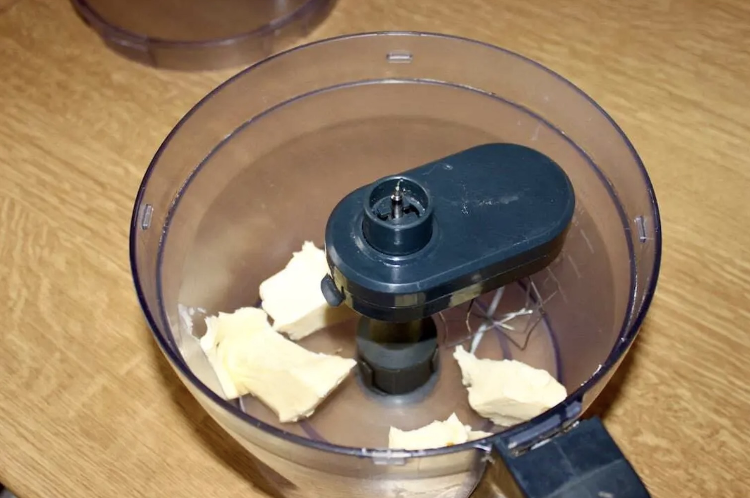 W misce malaksera umieść 100 g masła i zacznij je ucierać, aż stanie się białe.