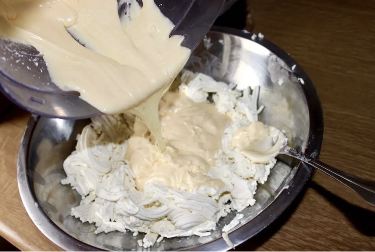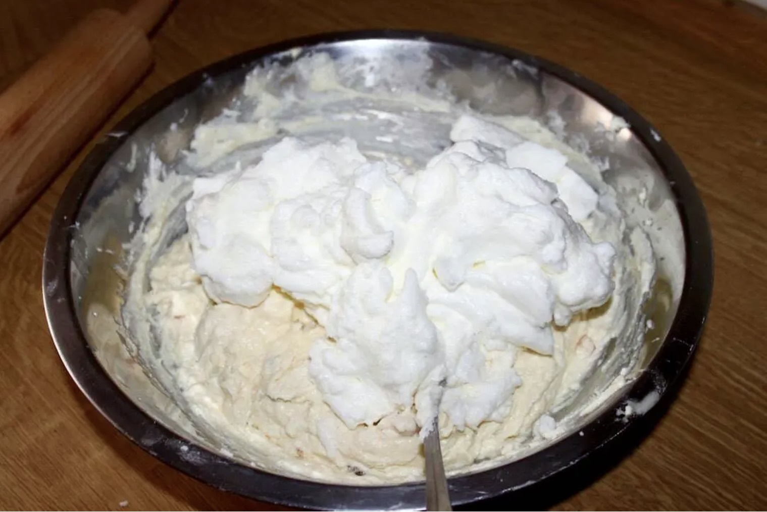 Delikatnie dodaj pianę do masy serowej i wymieszaj.