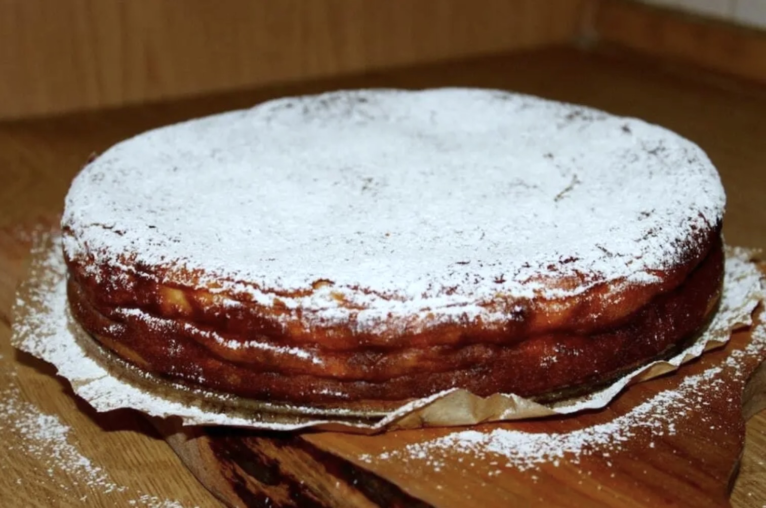 Gotowy sernik wiedeński obficie posyp cukrem pudrem.