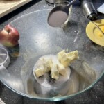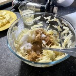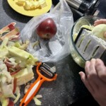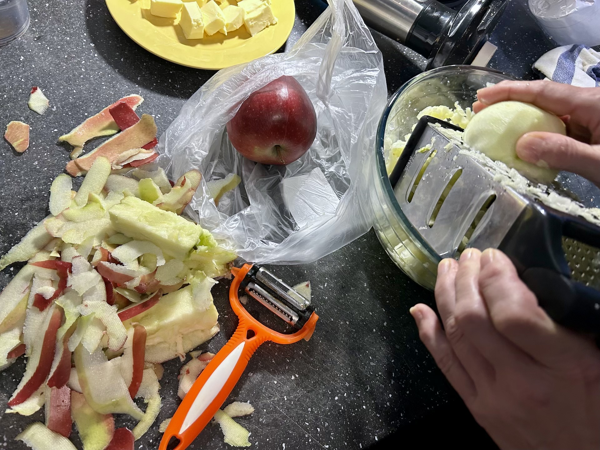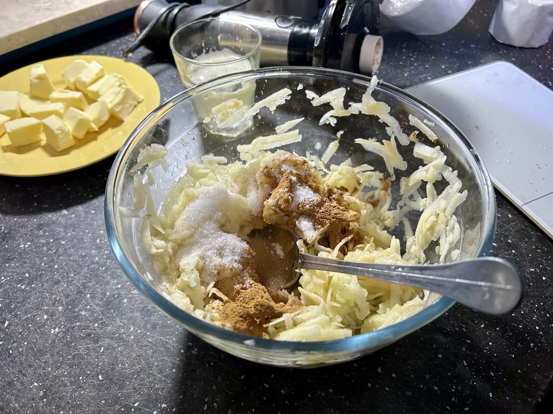 Jabłka: Jabłka obierz, zetrzyj na grubych oczkach i mocno odciśnij z soku. Wymieszaj z sokiem z cytryny, cukrem i cynamonem.