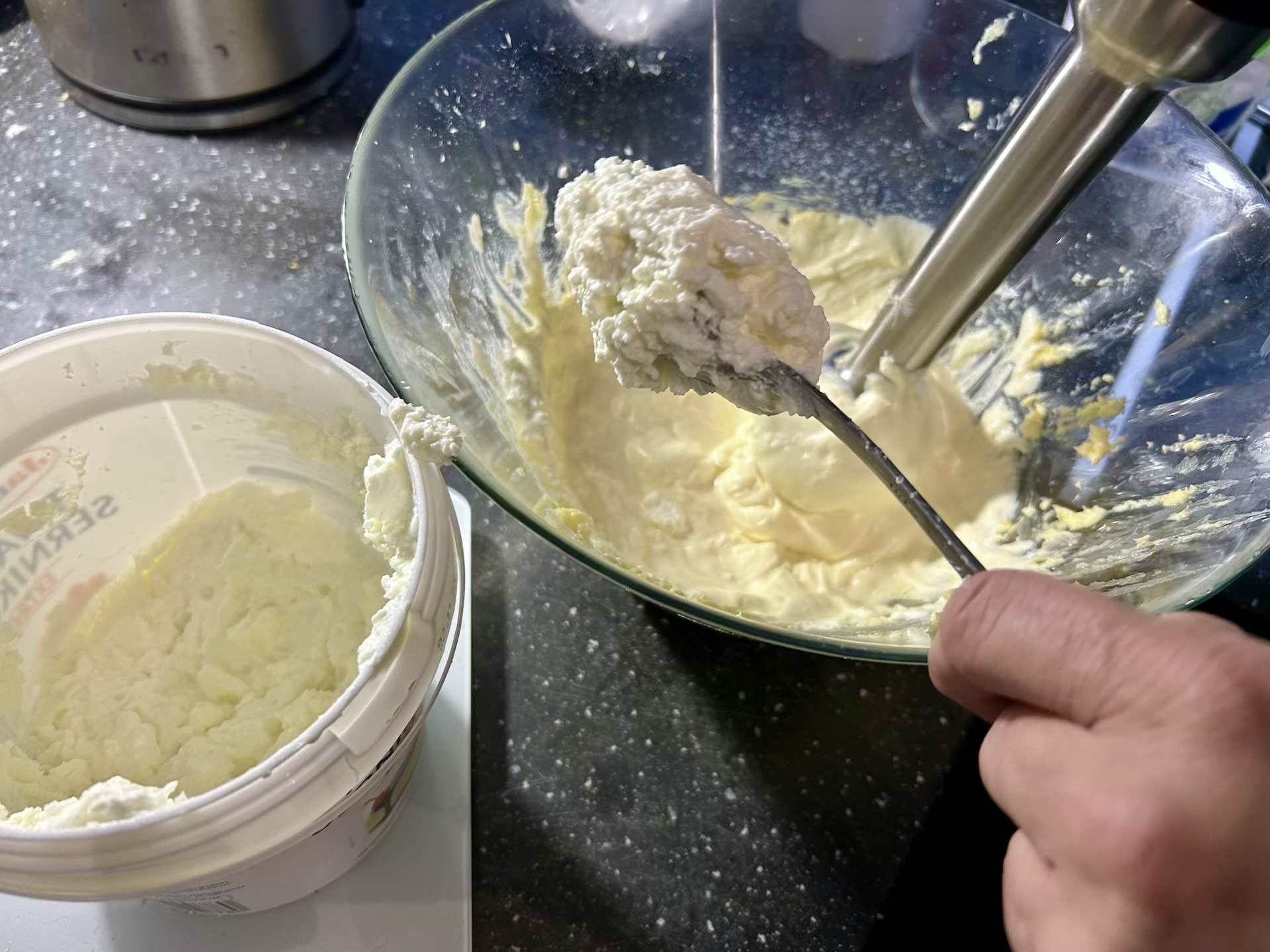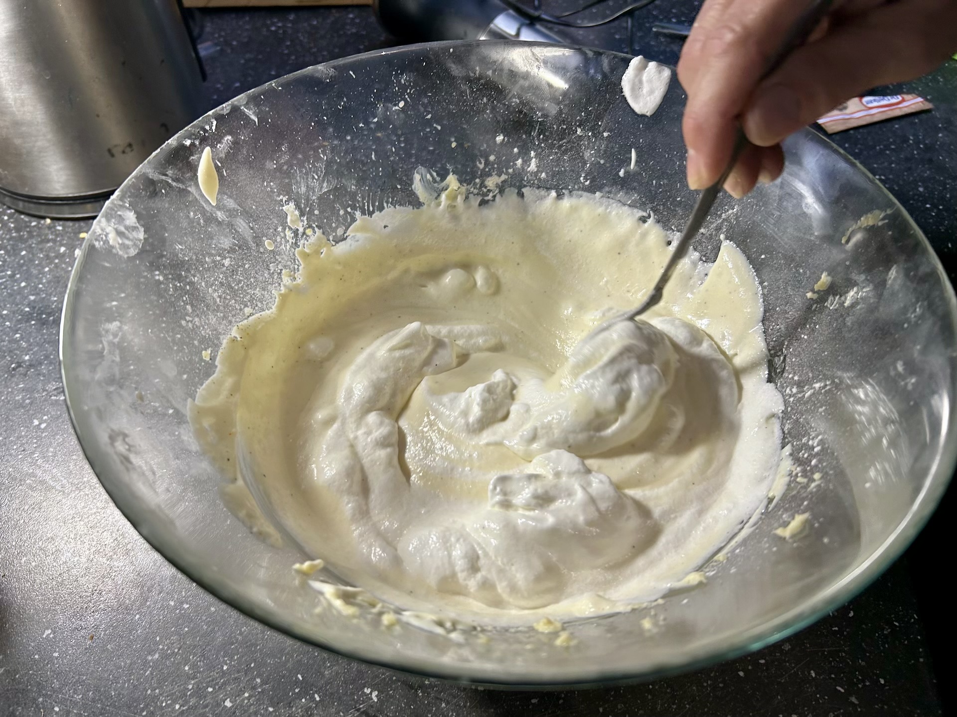 Następnie delikatnie połącz ubitą pianę z masą serową za pomocą szpatułki.
