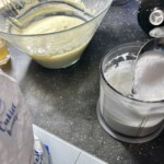 W osobnej misce ubij białka ze szczyptą soli. Pod koniec dodawaj resztę cukru (50 g) partiami, aż piana będzie sztywna.